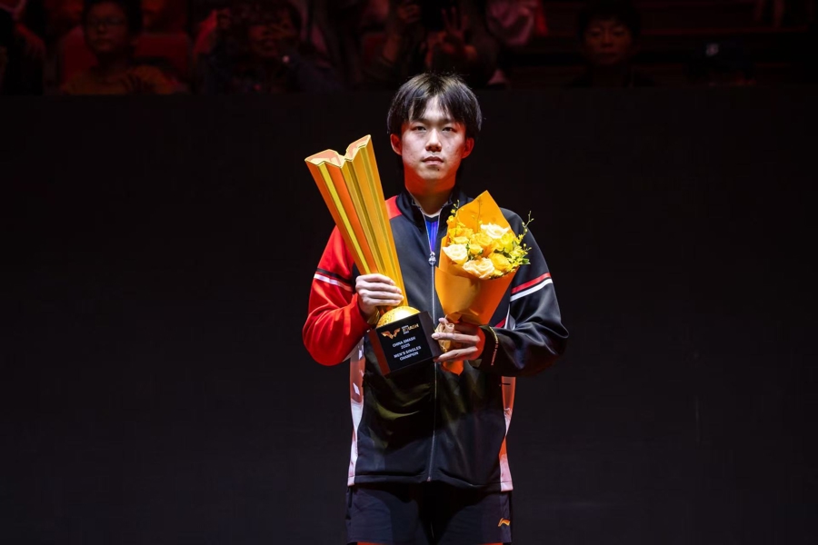 王楚钦分享了三冠背后的挑战与艰辛,“这次夺冠的过程非常艰难、艰苦,每一天都像在经历折磨,整个赛事就像一场马拉松,不断消耗着我的精力、体力,也考验着我对比赛的渴望。支撑我坚持到最后的,是心中的责任感和使命感。”